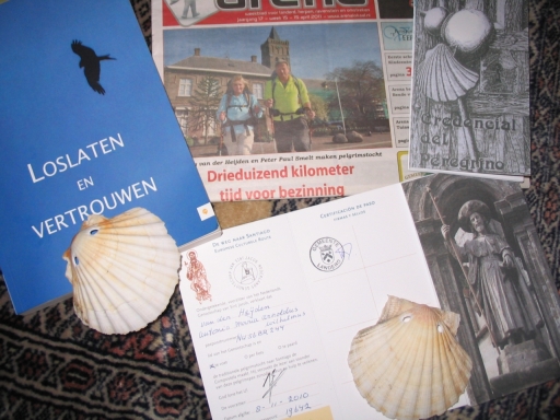Eindelijk is het dan zover en kunnen we jullie deelgenoot maken van onze plannen en uitvoering van de voorgenomen pelgrimstocht naar Santiago de Compostela. Nu we weten welke reislog we gaan gebruiken onderweg, willen we jullie ook op de hoogte houden van onze voorbereidingen en alle stress daar om heen. We komen er achter dat de tijd heel snel aan het voorbij gaan is en dat we nog maar 69 nachtjes voor de dag van ons vertrek zitten. We hebben een IPhone4 gekocht voor de communicatie, de verslaglegging en de foto's. Echter om dit tooltje aan de gang krijgen moet je veel geduld hebben. Zo makkelijk als het tooltje zou moeten werken, zo moeizaam verliep het met het installeren van allerlei applicaties. Enkele configuraties bleken niet uitgevoerd te kunnen worden omdat ze niet in overeenstemming waren met de handleidingen. We hebben de verkoper meer dan eens moeten raadplegen. Hoe dan ook, we hebben met hulp een heleboel aan de gang gekregen maar weten nog niet precies hoe alles werkt. De tekst maken we nu op in de notities die we dan kopiëren en plakken zodra we online kunnen. Hoe anders krijgen we onze teksten vooraf getypt en opgeslagen zonder internet in te schakelen. We zullen buiten Nederland alleen gebruik gaan maken van Wi-Fi lokaties om de kosten binnen de perken te kunnen houden. De achterban wil toch graag op de hoogte blijven. Berichten en foto's via ons tooltje verzenden naar de reislog gaat inmiddels perfect. Wij zijn nog zoekende hoe we video's op de reislog kunnen plaatsen maar ook dat gaat ons vast lukken. Onze eerste indruk is dat deze reislog duidelijk en gebruiks-vriendelijk is en jullie up to date zal houden van onze prestaties en verrichtingen. Voor een ieder is er de mogelijk-heid om via een door jullie zelf ingegeven e-mail adres op de hoogte te blijven en ons te kunnen volgen.