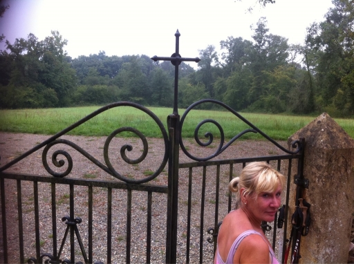 Nogaro is een stad waar we bij binnenkomst verwend worden met muziek. Overal luidsprekers in de straten waar Tiroler muziek uit klinkt. Gezellige muziek die in onze beleving niet echt bij een stad in het zuiden van Frankrijk past. Het lijkt alsof we zo een gezellig centrum binnen wandelen maar in werkelijkheid is Nogaro op deze zondagmorgen een hartstikke dooie en saaie stad. Bij de kerk lopen we bijna het centrum weer uit zonder een fatsoenlijk terrasje of iets dergelijks gezien te hebben. In de kerk blijkt een mis gaande en we besluiten voor de kerk op een bankje ons oud brood met sardientjes op te eten. Ondertussen bellen we oma iets vroeger dan normaal op zondag want we weten dat ze in de middag naar de Batenburgse dag gaat. Dol enthousiast krijgen we ze aan de lijn en beginnen de kerkklokken recht boven ons te luiden.